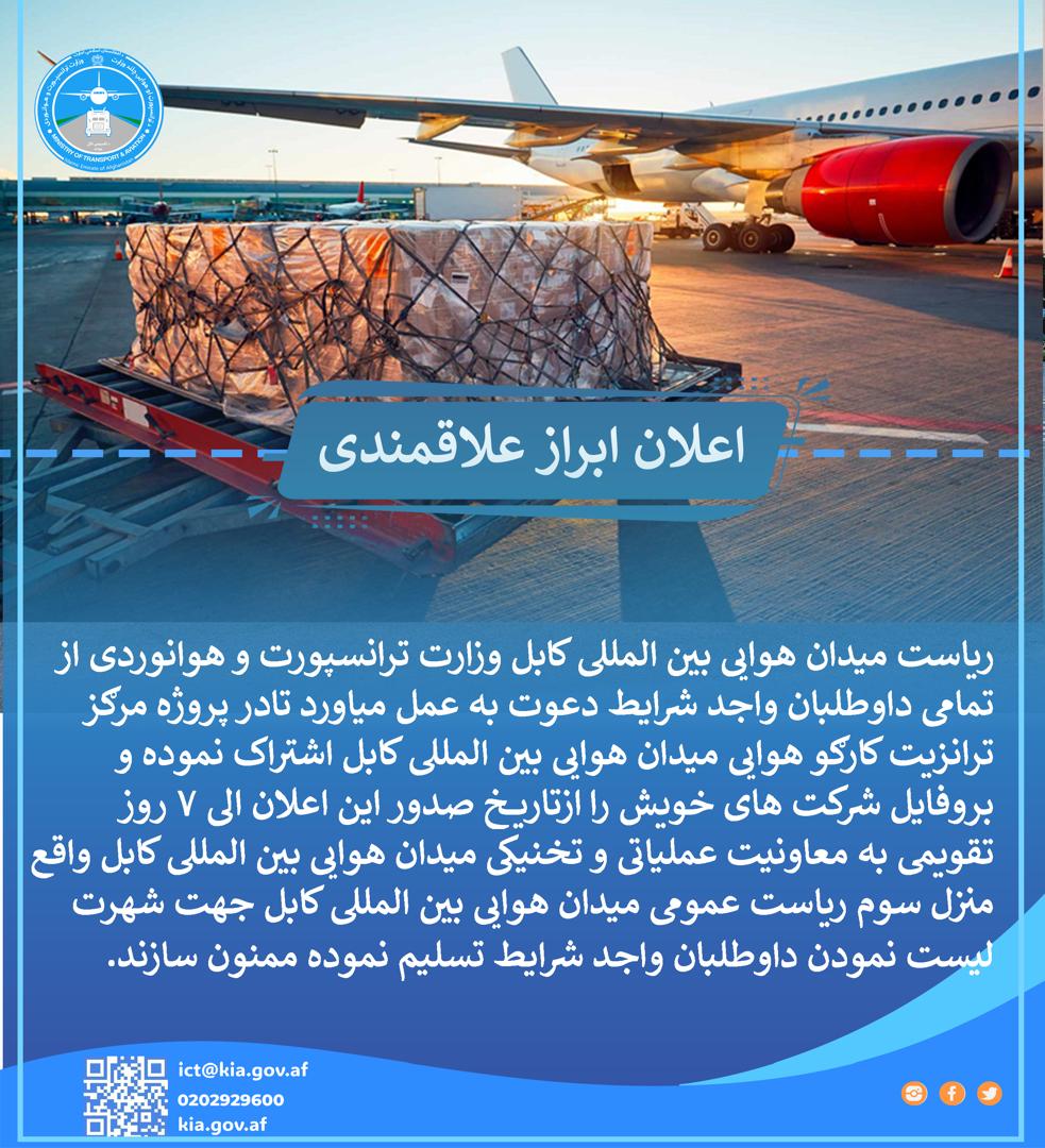 ریاست میدان هوایی بین المللی کابل وزارت ترانسپورت و هوانوردی از تمامی داوطلبان واجد شرایط دعوت به عم...